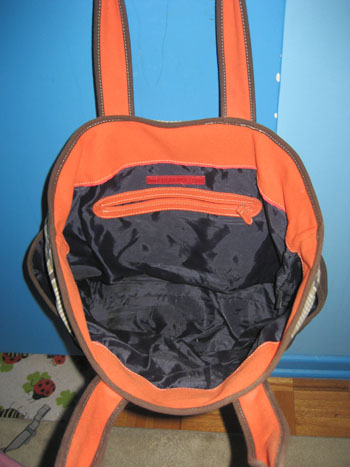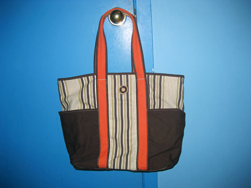 4. 两个TOMMY的大包, 25 down to $20/ each. 1)有橘色条纹的是帆布的,也是超级大size,无磨损,可水洗. 2)全棕色软皮包,也很新的,都没用,柜子里被压皱了。用一用会好的。 SOLD 。