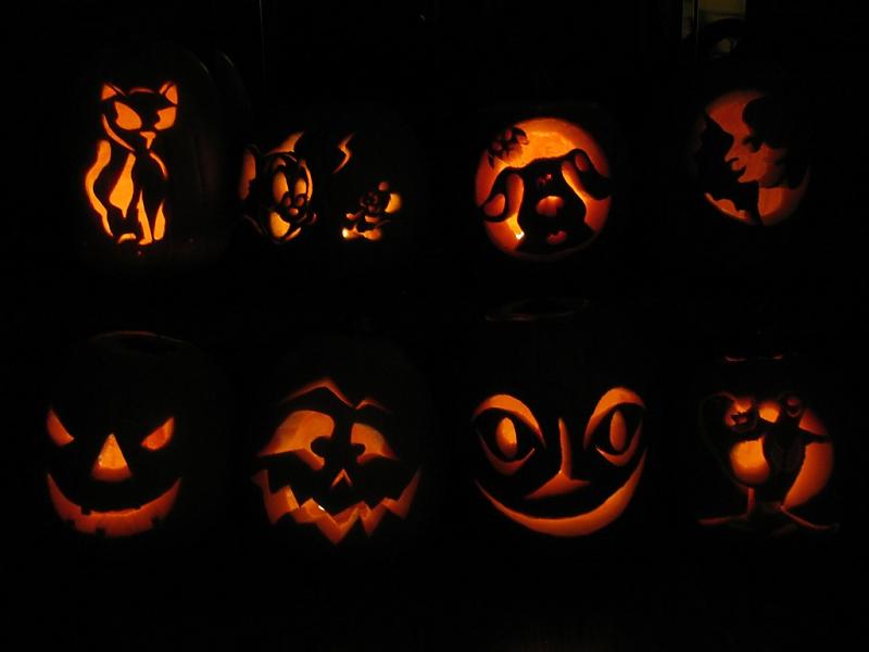 南瓜是家人一起刻的。往年刻得还多些。今年忙孩子,都简单化了。发张2008年刻的南瓜。
