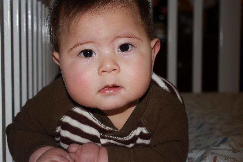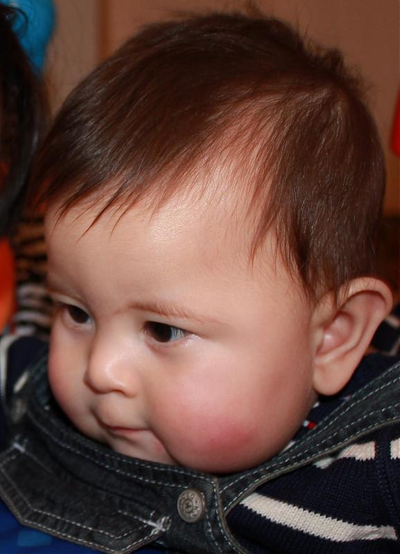 第一个圣诞节,第一个新年都过了,贝贝Alex转眼都7个多月了。 还坐得不是很稳,喜欢趴着,正在学爬,但很不得要领,就像游泳似的乱蹬腿。第一个小牙已经冒出来了,把我们全家都兴奋得要命。 奶奶的msn都改名为:We have the first tooth! 爸爸也大喊:加油,很快你就可以和我们一起啃牛排喽!:D