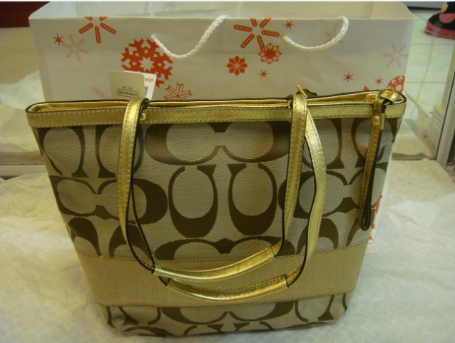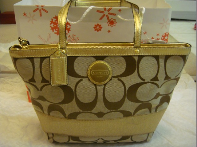1. 全新COACH 金色经典款,这款比同款的黑白色漂亮,感觉也时尚,上班和上学都很实用,原价大概是$268+tax, 税后 $303,现在试卖 $180