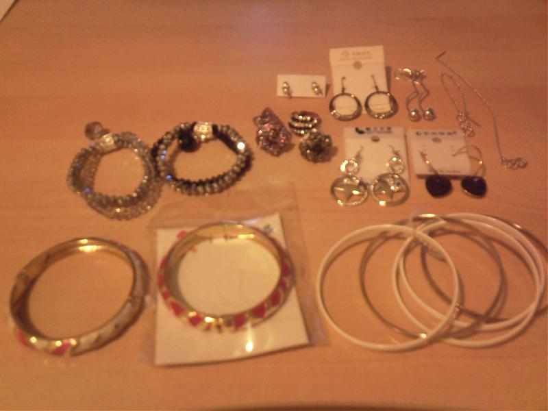 衣服和其他一些小东西 包包, 只用过一次, 红色的$10, 黑色的$8, 肩带可以根据你自己的喜好调节 (sold) 最下面的包$5 (sold) 全新装饰品, 耳环$5/个,戒指$4, 有些$3 (2个红色手镯已卖)