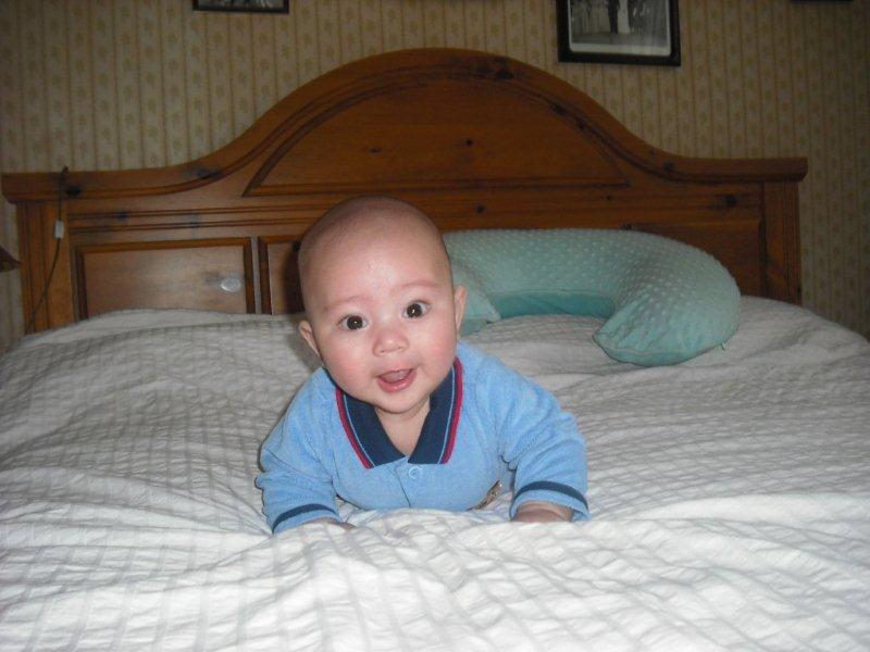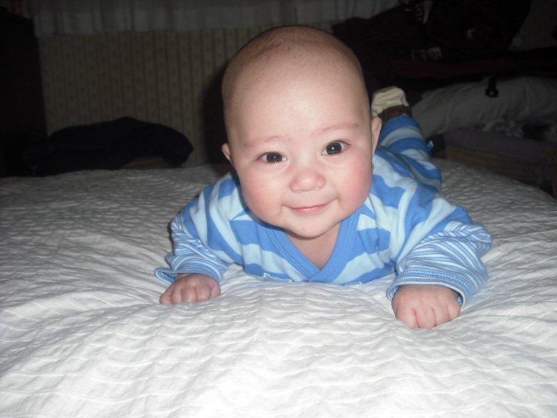freecrying 说: Alex早产一个月被你养的实在太好了 真的是能吃能睡就能长肉啊 我家杰克八个月了 才刚满18磅 从小就吃的不多 也睡的不多 属于好动型 看着胖嘟嘟的宝宝就想啃一口哈 点击展开... 就是由于他早出来一个月,所以一直让他想喝多少就喝多少。结果昨天带小家伙去打第二针(4个月零1天),护士一称8kg(94%),虽然还没有超重,不过不能让他随心所欲的喝了,正在递减他喝奶的分量。你家杰克眼睛大大的,炯炯有神,长大一定是个帅小伙。