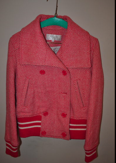 红色呢子夹克:(size: 170) $15 (扣子齐全,忘记扣中间那个了)