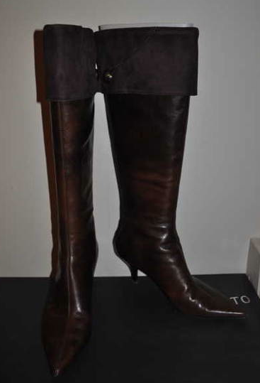 棕色nine west leather boots: size 7.5, $50 ,鞋跟:5 cm(帮朋友卖,她没穿过几次,因为她觉得太高了。)