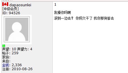 三胖子 别当头给我一棒子 注册 2010-09-08 消息 400 荣誉分数 11 声望点数 0 2010-12-16 #1 Dapaosunlei到处卖药,是真药还是狗皮膏药不清楚,而且每天在那up up。咨询后才知道他几乎都没啥药,就回复他一个帖子:"你啥药都没有还在这Up up啥意思! " 谁知道他就狗急跳墙,疯狂咬人:这是他给我留的悄悄话: 这种没素质的人严重地污染了村子,也给CFC带来不和谐。诚恳村长封杀他的广告。这种人卖出去的药也极有可能是害人的药而不是治病的药。 附件 未命名.jpg 17.9 KB · 查看: 90