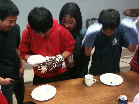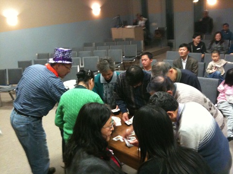 表演期间,晚会主持人刘靖的天大历史问答难道了不少人。我们知道天大的前身北洋大学是中国第一所高等院校,建于1895年。校歌的词曲作者却鲜为人知,好在校友备有iPhone,现查现答。游戏最能活跃气氛。两岁的Maggie Du勇夺三岁以下组选对对牌冠军。而六十岁以上老年组的对牌游戏具有趣味性和知识性,也体现了对老年人的关爱。难度最大的游戏是戴着厨房手套拨巧克力纸比赛,只有几个已上高中的校友子女敢于挑战了。