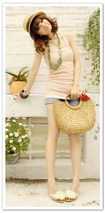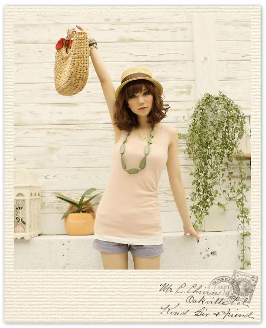 推荐.满版亮葱不修边罗纹背心 (杏色现货 2件) 库存不多 欲购从速