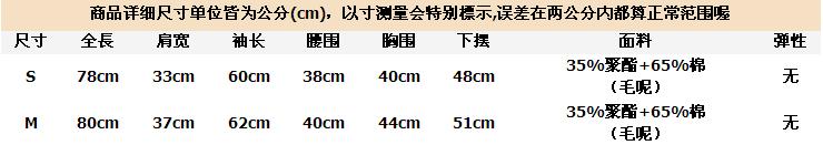 衣长66cm 胸围94cm(实际适合胸围80-90) 肩宽36cm(实际适合肩宽36-38) 袖长60cm