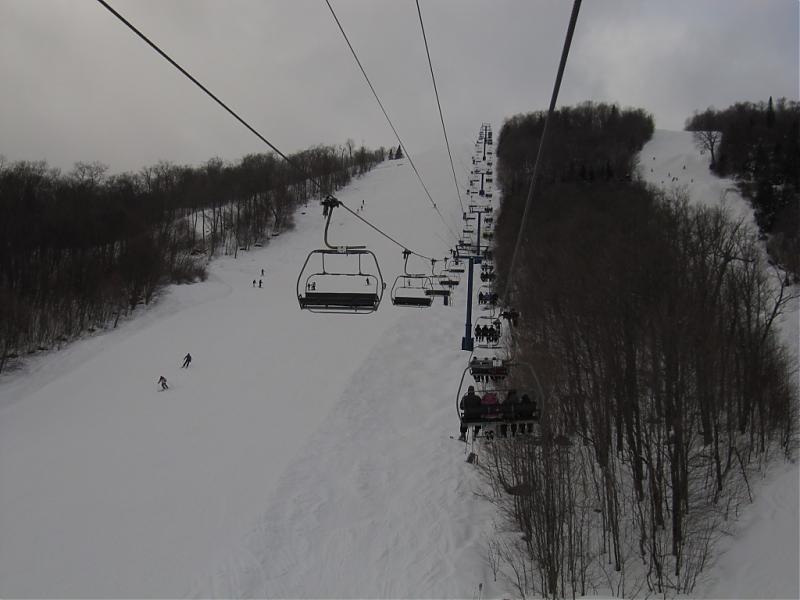 昨天大年三十,暴风雪交加。今天大年初一,却是个大晴天,万里无云。趁着暴风雪后的好雪和人少,早上和朋友就直奔雪场(CF),尽情地享受了一下今年渥太华的第一场暴风雪带来的 fresh powder。。。 中午离开雪场时,人逐渐开始多了起来,雪道开始拥挤,上缆车也开始排队了。。。。