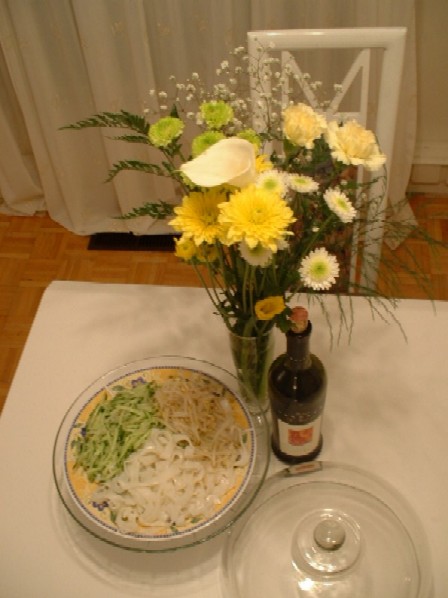 小傻 说: 无图无真相.. 其实我也找不着图了我们家鸭子都不知道藏哪个计算机的哪个文件夹了...:blowzy: 先胡弄两张还是N年前住公寓时照的...那个凉皮是我家LD自己蒸的;猪蹄是我烧的.. 这么多年过去了功力肯定长了呀。。 BTW,居然看到了鲜花真是不容易..现在俺们家连绿色植物都不多见了都差不多成了此情只待成追忆了.. 点击展开... 界两道菜跟鲜花美酒可真不搭。
