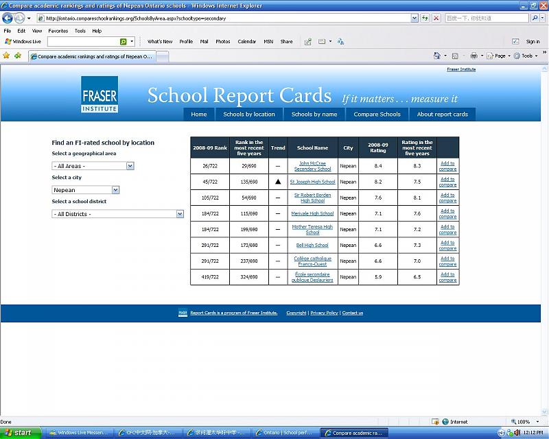就很一般了。 现在有Gifted Program 的学校就三所, Lisgar HS,Merivale HS 和 Bell HS 。 我感觉IB program 比Gifted Program要好。 如果不是 Gifted 的学生, 上Nepean HS 和 Earl of March HS, 口碑很好。