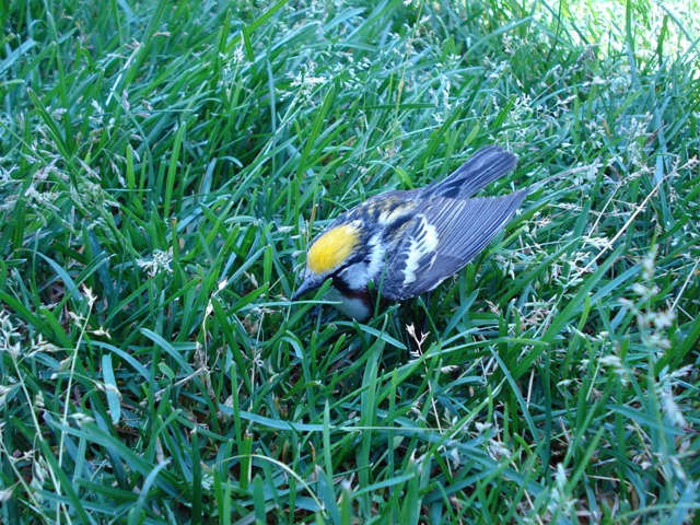 有一年夏天的午后,忽然听见厅里窗户上传来一声闷响,赶紧跑过去,象外张望,发现一只羽毛发绿的小鸟,扎开稚嫩的翅膀,在屋檐下,紧张滴向上呆望着,哈哈,一定是它,俺赶紧叫上孩子们,雀跃着奔向后院,它没有跑,看我们的到来,只是把小小的脖子缩了起来,我们轻轻将它捧在手心里,看它受伤没有,它看起来除了有点疲倦,一切都好,我想这是一只刚刚出巢学飞的幼鸟吧,天太热,飞不动了,一下撞到了我的窗子,俺打开水龙头,放出极细小的水滴在手上,然后对着它张开的小嘴滴进去,它居然在喝啊,它一定是渴了,喝完水在阴凉的地方也休息了一会了,忽然我们听见急促的鸟鸣声由远及近停留在我们的屋檐上,因为太高,我们无法看清是什么鸟儿在叫,但是,我们猜到一定是鸟爸鸟妈来找它们的宝贝了,于是我们赶紧高高举起小鸟,跟它说,你飞吧,去找爸爸妈妈,真怕它不会飞或者飞不起来了,没想到孩子手一扬,那只小鸟腾空飞起,飞上屋檐。。。它一定又回到了父母身边。。。后来有一天当俺看见几只有黄有绿的小鸟出现在后院,俺一下就认出了它们,这应该是那个小鸟的一家吧