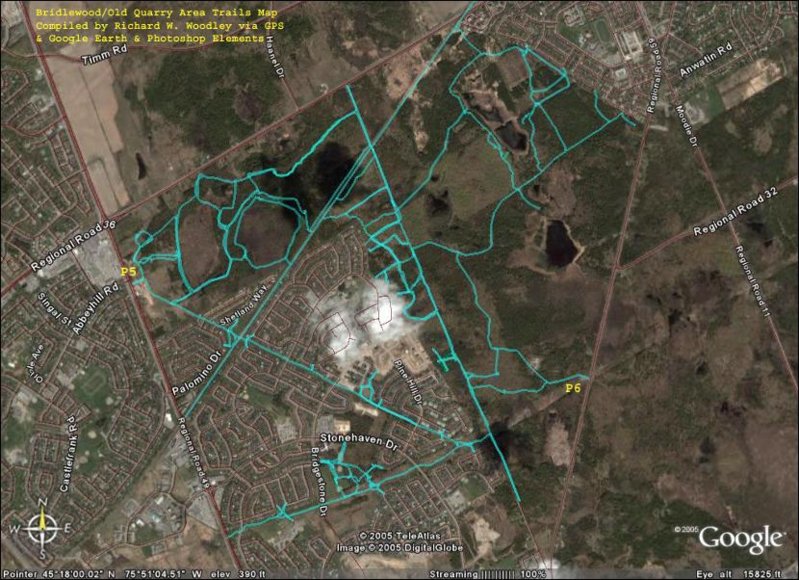在Hezeldean Mall的马路对面, 从巴屯来的话, stranherd 接fellowfield, 一直开到eagleson, 右转, 一直往北开, 看到左手有Independent 的时候, 右手就是P5. 我忘了那个trail的名字, 好象是old quail.