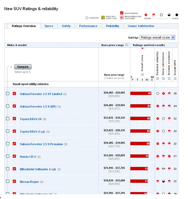 不评价您挑选的这两款车,上传一张consumerreport的截图