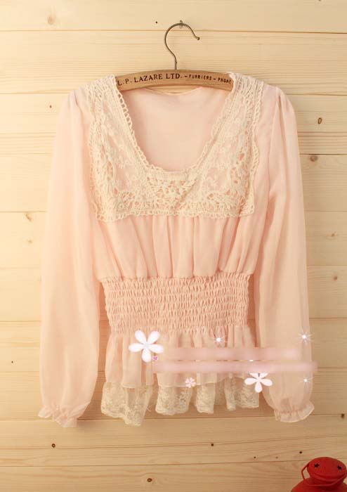 2011春夏♥ VIVI杂志款甜美蕾丝勾花领雪纺衫