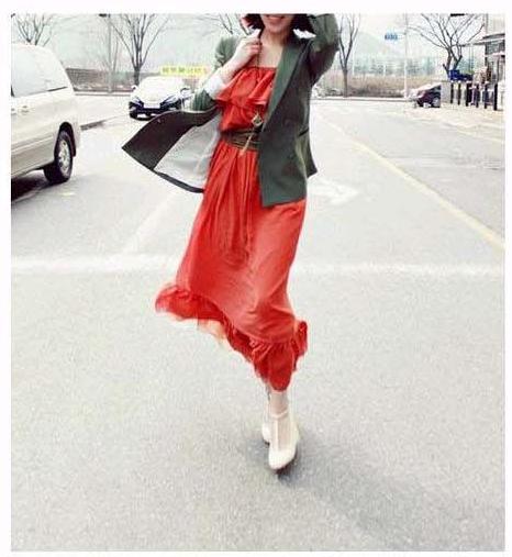 2011夏♥ 韩版荷叶裹胸及地雪纺长裙连衣裙