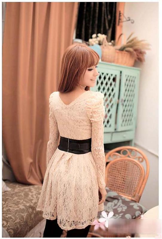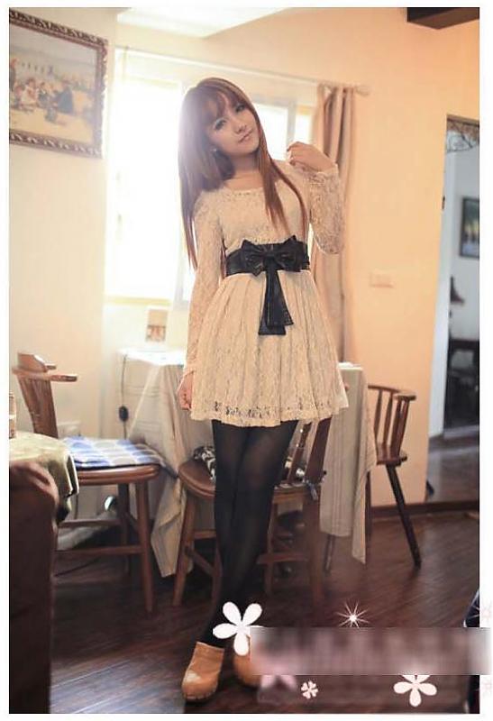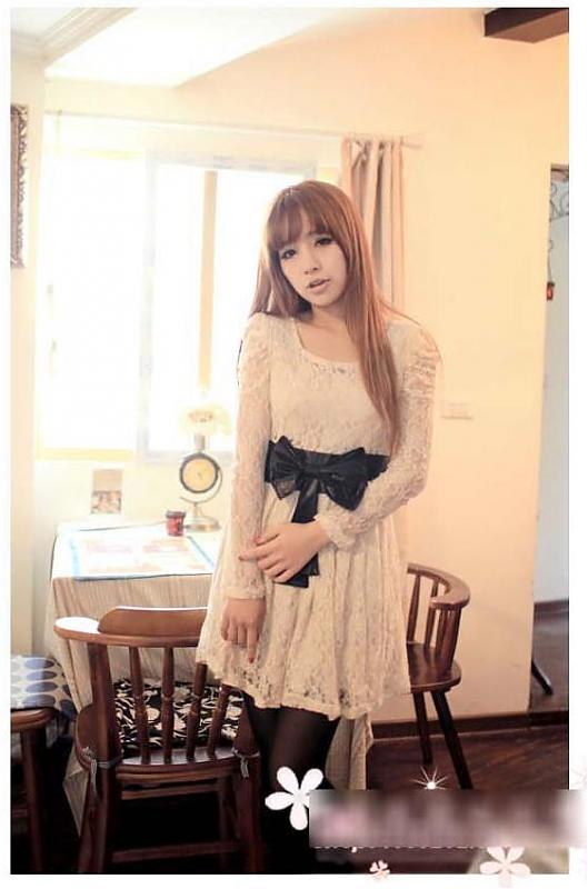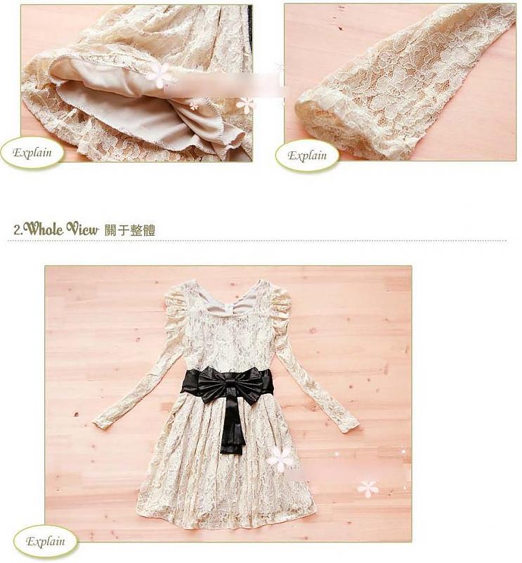 2011春●复古梦幻公主风蕾丝洋装连衣裙(赠蝴蝶结腰带)