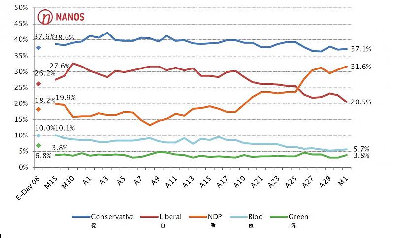 从图形来看,新民党是抢了自由党和魁独的票。保守党没有大变化。
