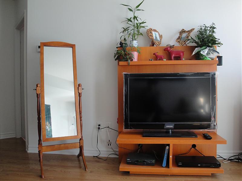 去年买了一些新电器,谁想不到1年,就要回国了,所有的东西基本都是新的 40” Samsung LCD LN40B530 $580 Sony DVD Bray BDPS 360 $130; matching cable $60 Full size wood mirror $60 Entertainment Center $100 如果有兴趣,请致电 613-9861858