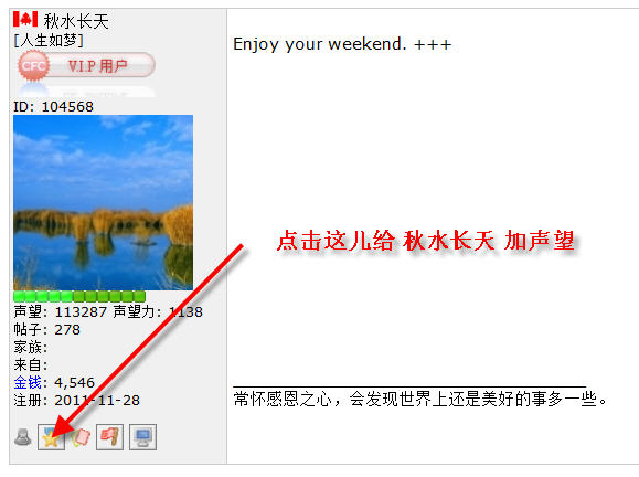 heureux 闲逛 管理成员 VIP 注册 2004-07-18 消息 46,700 荣誉分数 20,497 声望点数 1,393 2012-05-06 #3,671 ll-ll 说: 扫盲一下,点哪儿加声望? 点击展开... 见图示: