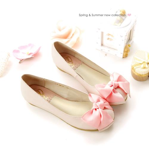 漫妙舞漾甜蜜滿載蝴蝶結真皮娃娃鞋*羊皮