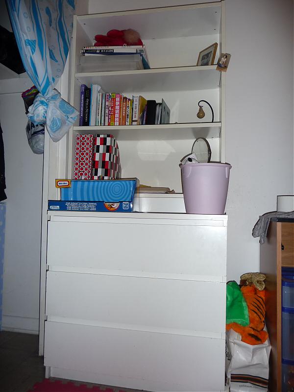 1。书架与三层抽屉衣柜子, 抽屉很大,很能放衣服, 书架和柜子可分开摆放。$30