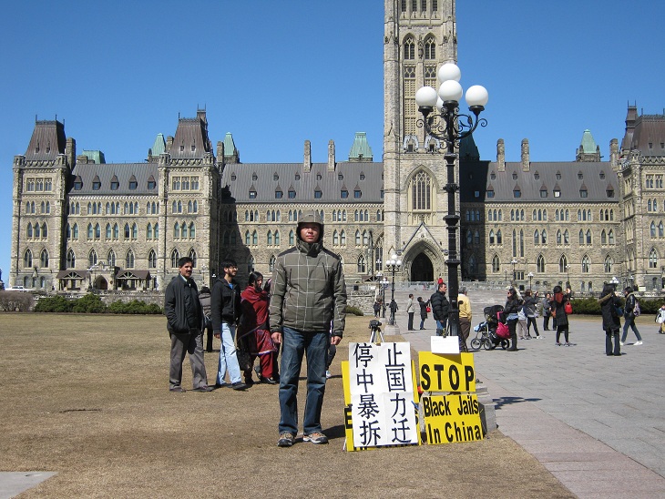 中国公民孙武俊在加国会大厦前无限期请愿抗议强拆(组图)