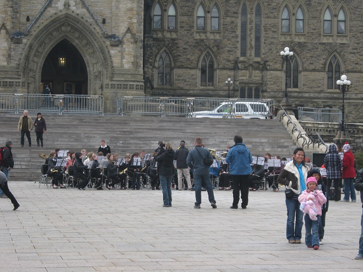 2011年4月20日,渥太华国会山上访抗议五个月又二十天,今天星期三,小雨。今天由于下雨,国会山游客不多,不过来了几个班级的学生。
