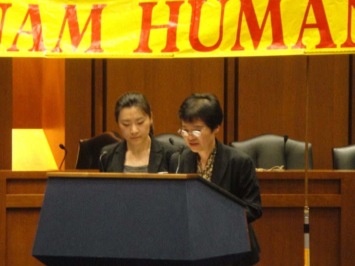 我叫葛丽芳,今天我代表中国冤民大同盟向国际人权组织和国际社会用事实揭露中共的人权黑幕,在此由于时间关系不能一一列举,如有关心中国人权问题的专家可向我们索要。