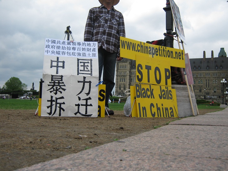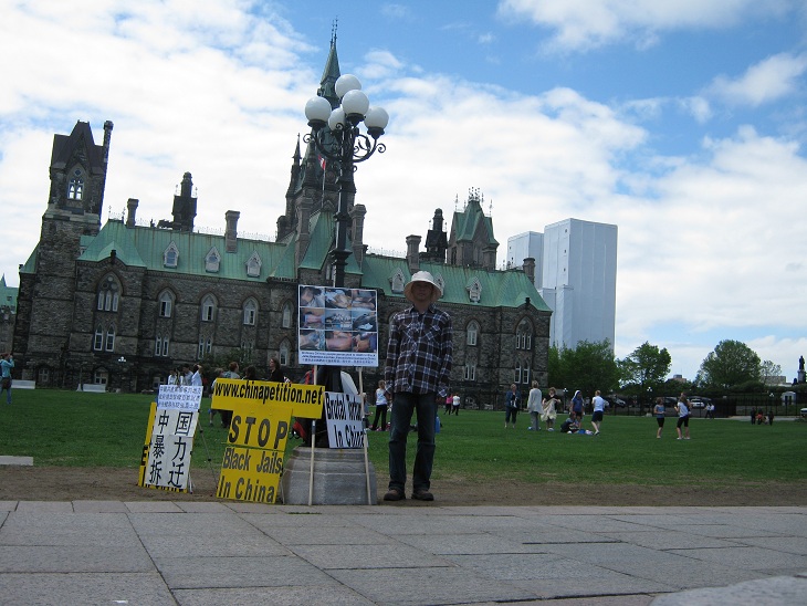 加了一段新的抗议标语 加拿大首都渥太华国会山上访抗议日记2011年5月22日