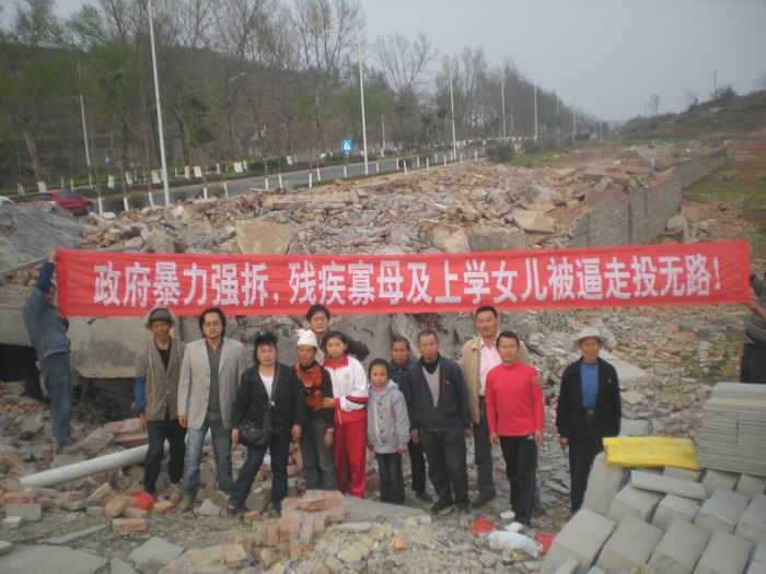 宁波市江东区最新暴力拆迁--血泪控诉宁波市江东区拆迁办之非法暴力行为 http://sunwujun.blogspot.com/2011/04/blog-post.html 关于我们村的强拆情况,这是文章链接 法官说:“要想出去,不要上网,不要上诉!”——官黑勾结 百姓凄惨 http://sunwujun.blogspot.com/2011/02/blog-post.html 我们家就是在这个宁波市江东区东郊乡戎家村。这是我的一位网友制作的英文网站 www.chinapetition.net (这是一个google的group) 里面有很多关于国内暴力强拆和黑监狱非法对待访民等英文媒体报道。我就把这个网址写在我的抗议牌和小宣传单上了。谢谢大家 作者孙武俊 613-791-7788 邮件chinesepetitioner@gmail.com skype用户名chinesepetitioner