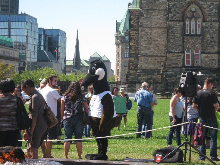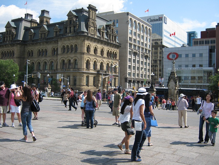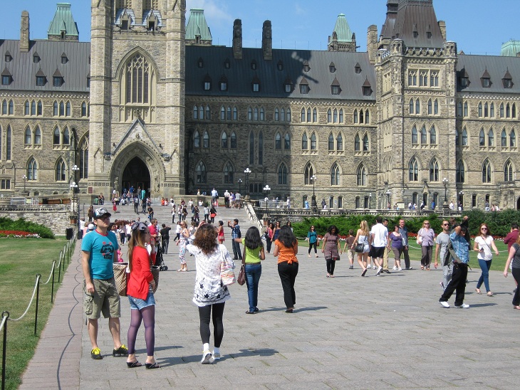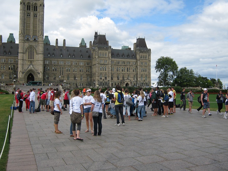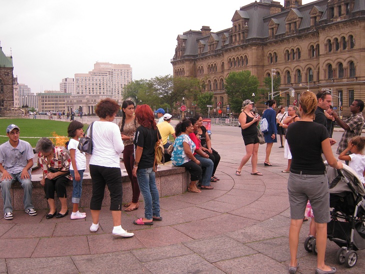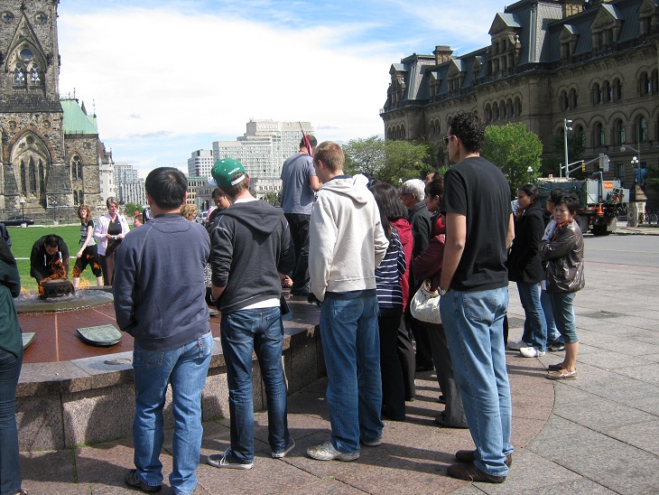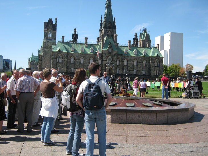 2011年8月31日,渥太华国会山上访抗议十个月又一天,今天星期四,多云。今天国会山的游客也不少,还遇到一位外国游客,他直接过来向我要小宣传单,当我给他后,他用中文对我说“谢谢”,我也用中文谢谢了他。