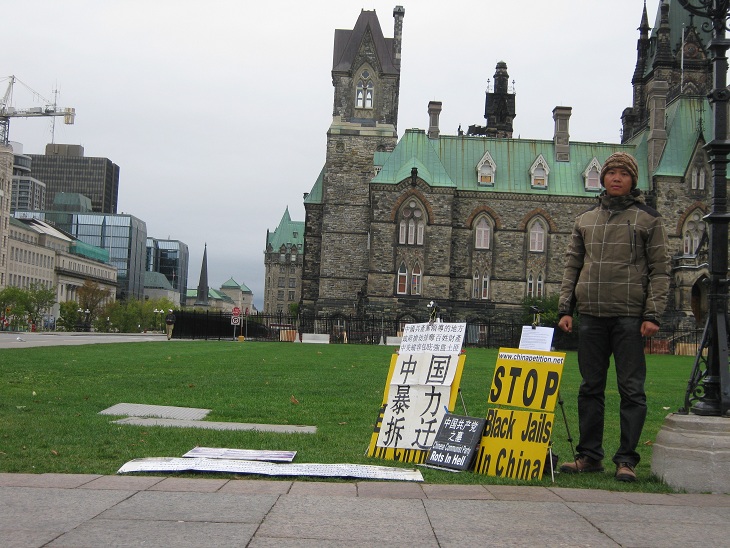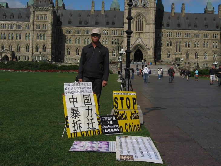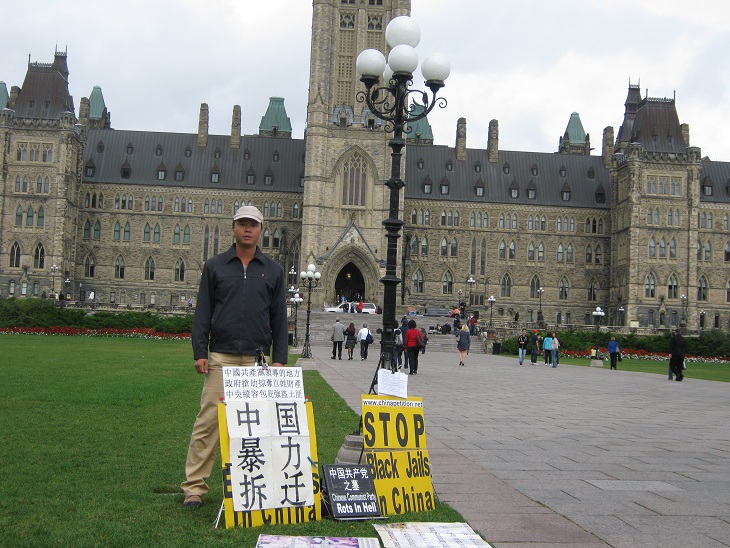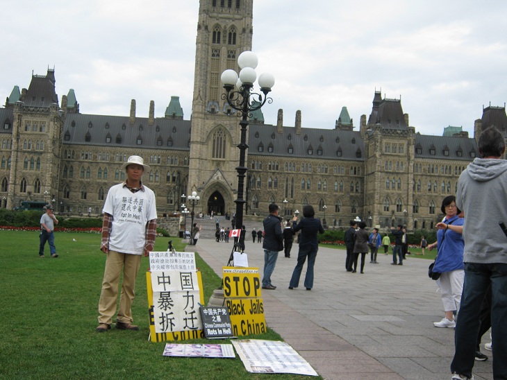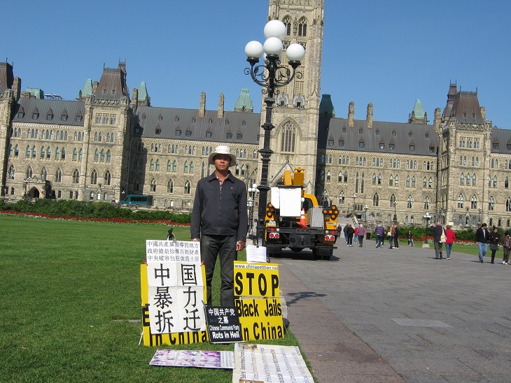 中国公民孙武俊在加国会大厦前无限期请愿抗议强拆(组图)