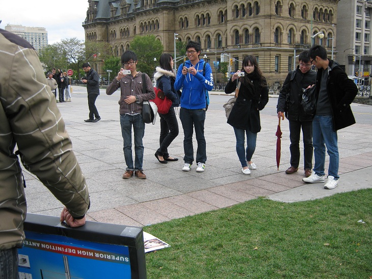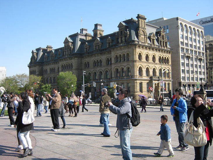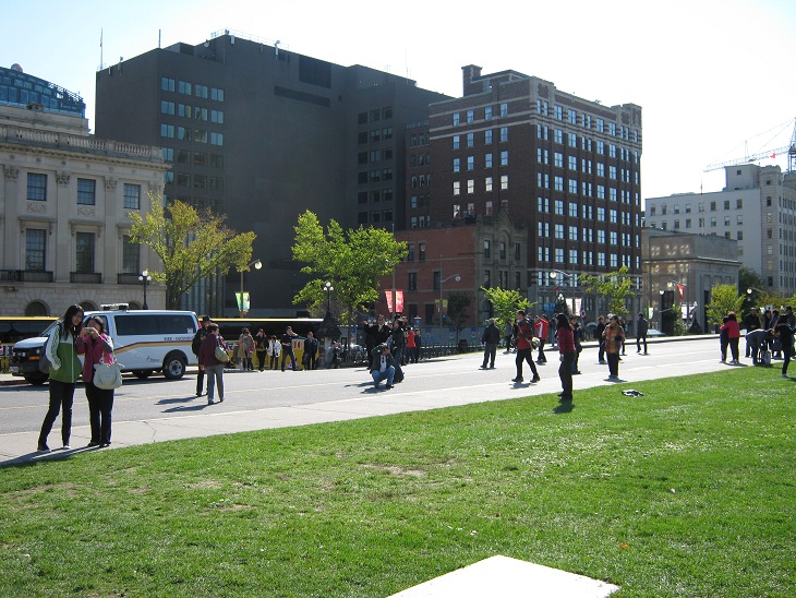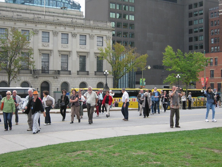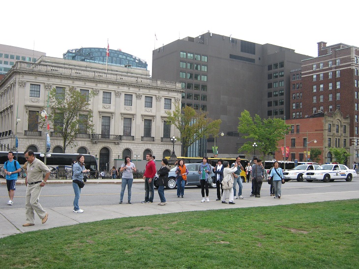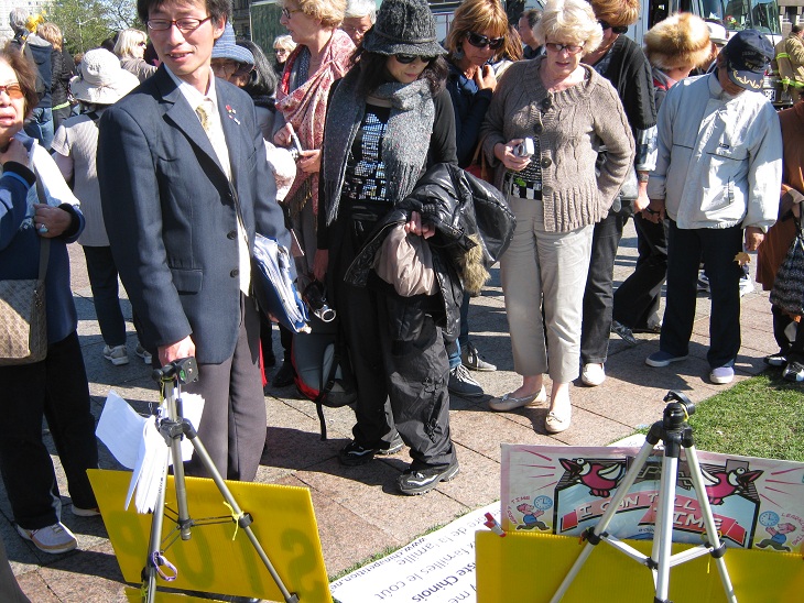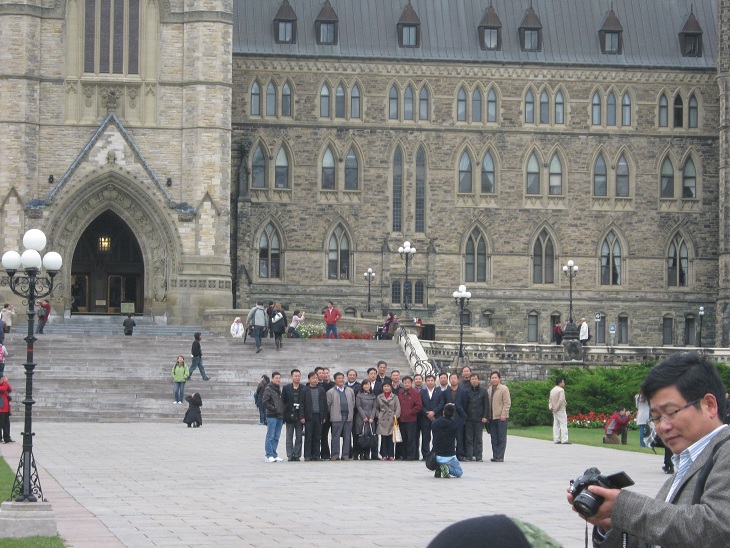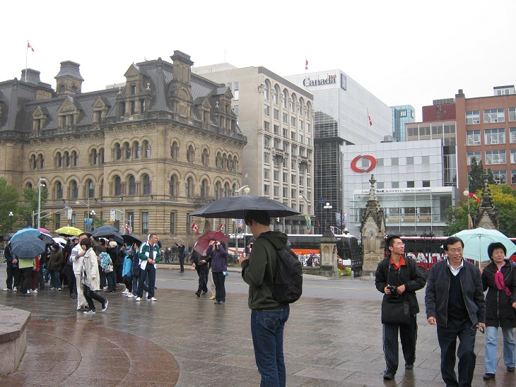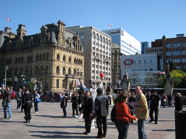这几天在国会山遇到好多批国内来的旅游团,大多都是小的团,6,7人到20来人。有些同胞看到我抗议和共产党墓碑后就过来看个究竟,我也和他们聊了一会儿。有几个旅游团是刚从大瀑布那边过来。看来从中国来加拿大旅游的,尼亚加拉大瀑布和国会山基本上都是必游之地,我在这里抗议是找对地方了。