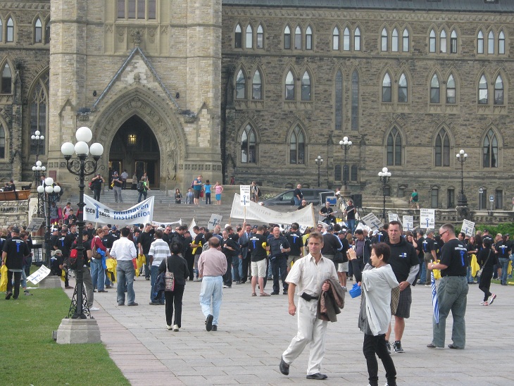 2011年9月29日,渥太华国会山上访抗议十个月又二十九天,今天星期四,阴天。今天比较凉快,来国会山的游客也很多,还来了一个加拿大(监狱,拘留所的)惩教官工会的示威活动。