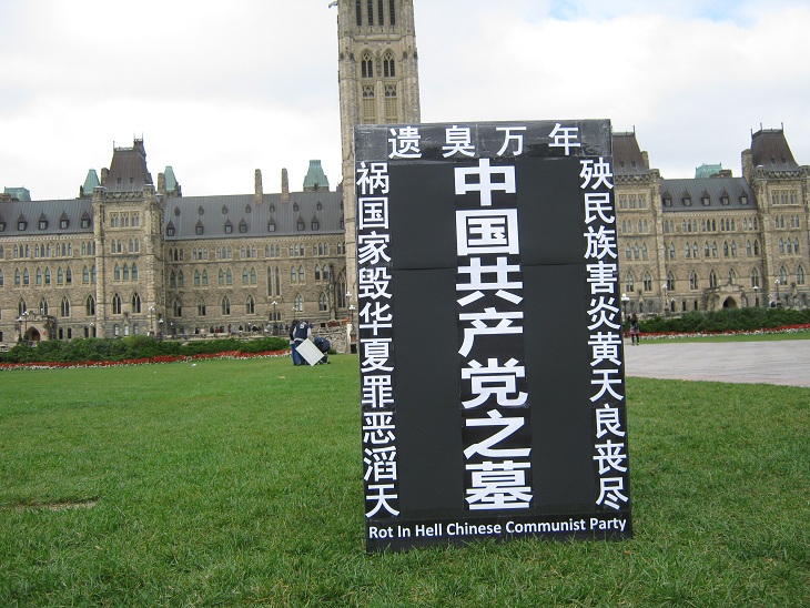 新做了一个大的配挽联的中国共产党墓碑 加拿大首都渥太华国会山上访抗议日记2011年10月1日