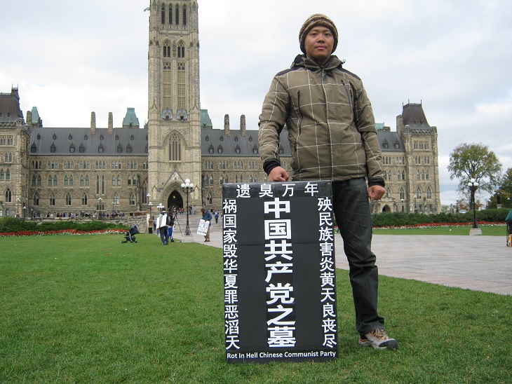 那些只会说大话吹牛皮的共产狗熊 加拿大首都渥太华国会山上访抗议日记2011年10月4日