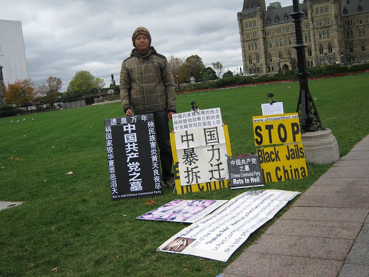 广州从化暴力征地抓12人 加拿大首都渥太华国会山上访抗议日记2011年10月7日