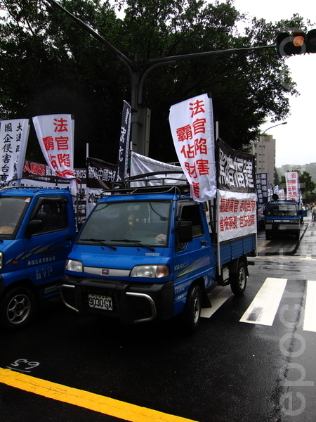 网上看到消息,10月3日,无惧中共打压 台商盛大车队游行,ZT大纪元。这次那些受害的台商组织了至少30辆“受害台商车队”举办大游行。其中的抗议旗帜上写,无耻中国共产妖孽,诱骗迫害台湾人等。自从受害台商在上月9月9日和26日,在台北和台南有上百人进行了2次大规模抗议游行后,大概让共产党丢脸丢大了,恼羞成怒,以致发飚了。10月3日的游行前,台商连续2天接获中共官方来电要求不要举办游行,并威胁派人来台搜证、破坏游行。