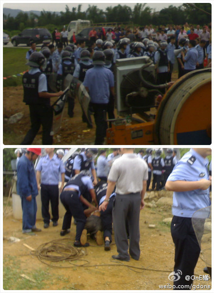 网上看到消息,中国广州近日传出暴力强征农地事件,官方出动上百警力,一部分还头戴钢盔手持盾牌警棍全副武装,手无寸铁的太平镇水南村民为了护地,肉身与警搏斗,多人遭打伤,12人被抓。-新唐人。记得上个月,共产党的四部门调查处理11起强制拆迁致人伤亡案件,给予党纪政纪处分和行政问责57人(我备注,这些是装样子给老百姓看,党怎么能忍心舍得真正惩罚那些为党的腰包鼓起来,而奋勇卖力的忠实走狗呢?看这次广州从化暴力征地的官员们就深得此道。党纪政纪处分到底算是哪门子惩罚,老百姓人都已经被他们整死或逼死了。世界上只有共产党独裁的国家才会有这样的惩罚吧)。涉嫌犯罪移送司法机关处理31人(我备注,真正被起诉,被判刑,被坐牢也只是下面的马仔,但到底能有几个呢?说不定这些人在里面还能拿到组织的月薪补助呢。)