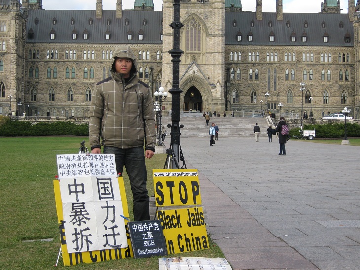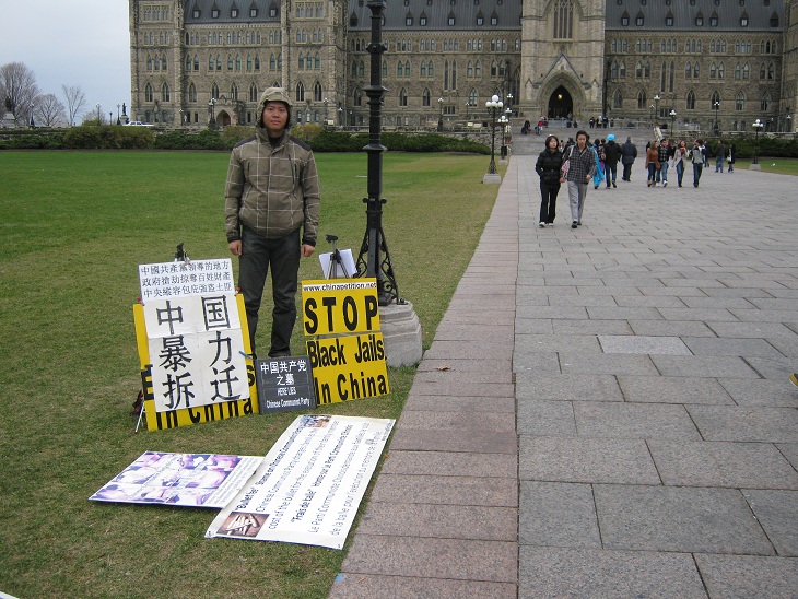 www.chinapetition.net (这是一个google的group) 里面有很多关于国内暴力强拆和黑监狱非法对待访民等英文媒体报道。我就把这个网址写在我的抗议牌和小宣传单上了。谢谢大家 作者孙武俊 613-791-7788 邮件chinesepetitioner@gmail.com skype用户名chinesepetitioner