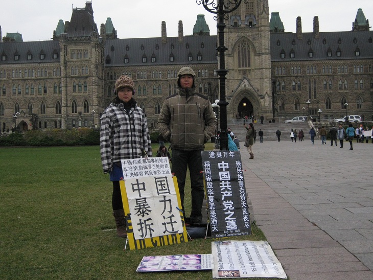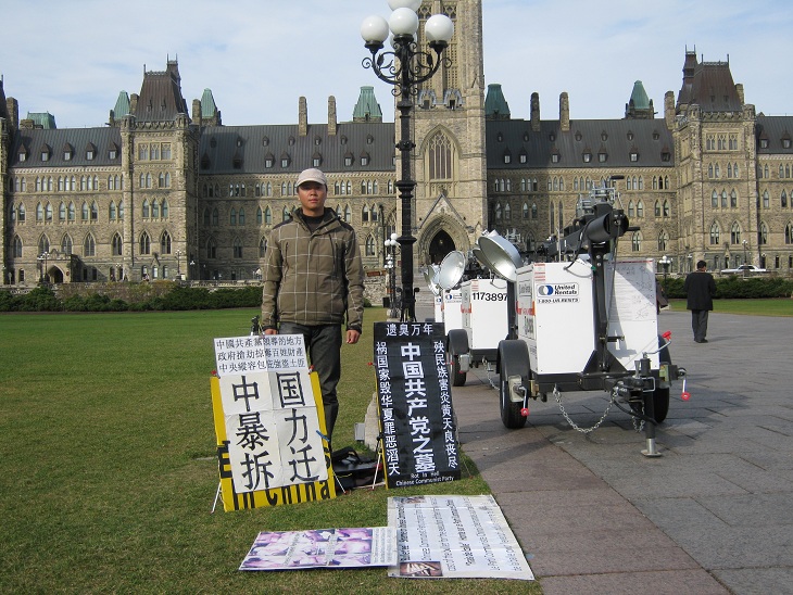 91岁老人遭强拆含冤死 沪当局300人抢尸 加拿大首都渥太华国会山上访抗议日记2011年11月9日