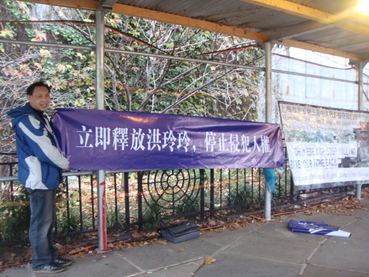 那2位老太太先是看到我的抗议,然后过来看,当我把小宣传单给了她们之后,其中一位和我聊了起来。她问我从中国哪里来的,我说是浙江,省会是杭州。她说她知道,她还告诉我她还去过中国的许多地方,并说中国政府对家庭教会打压很严厉。