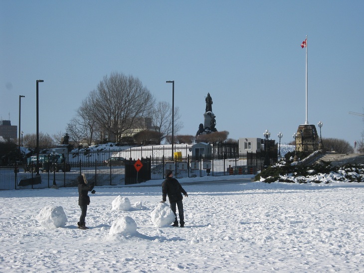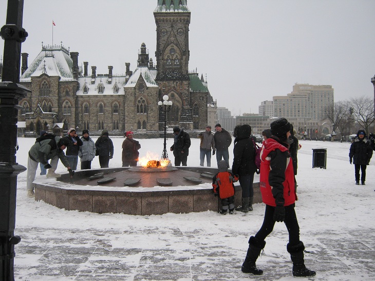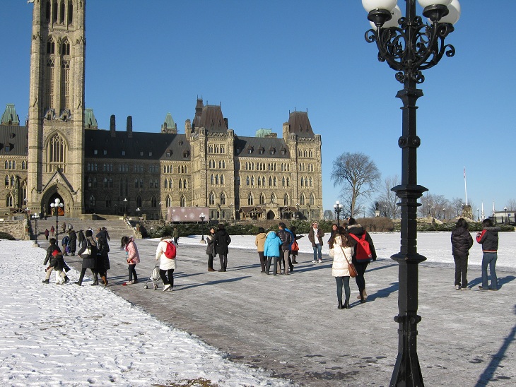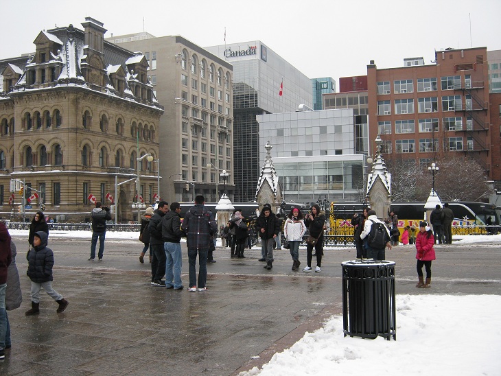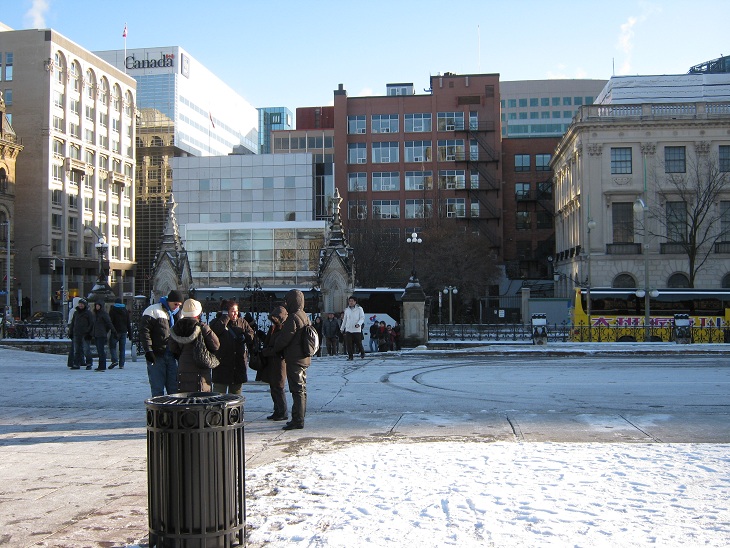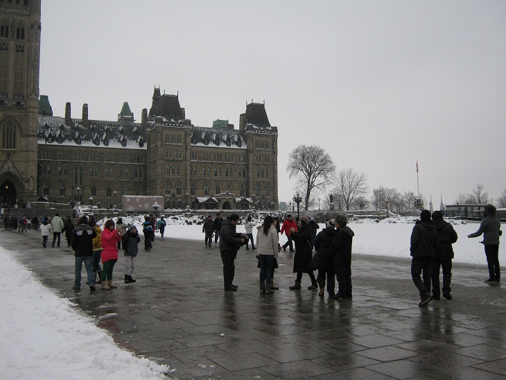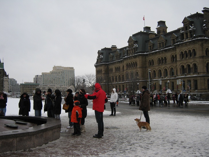 2011年12月24日,渥太华国会山上访抗议一年一月又二十四天,今天星期六,多云。今天天气不错,来国会山的游客也不少,还遇到几个中国学生,他们看到共匪的墓碑后对我说,支持我,他们也很讨厌共产党。其中两位同学还站到墓碑的后面让他们的同学拍了一张照。