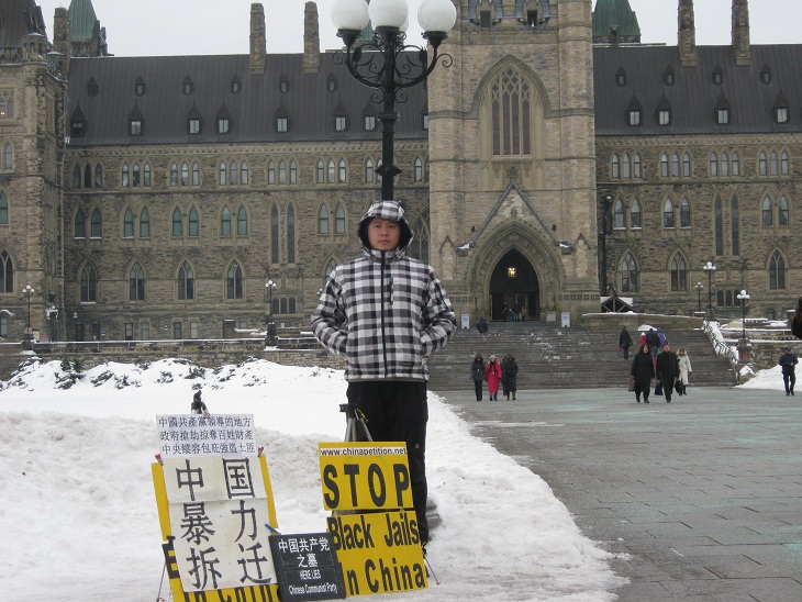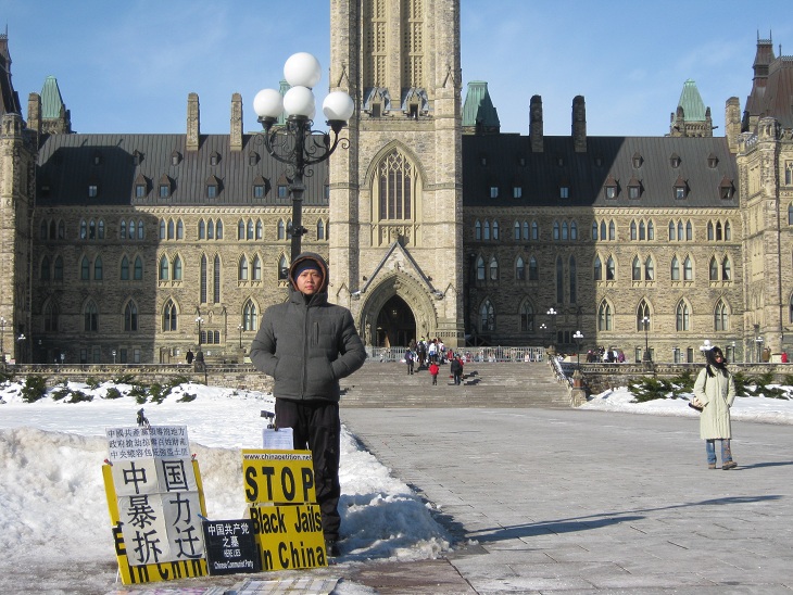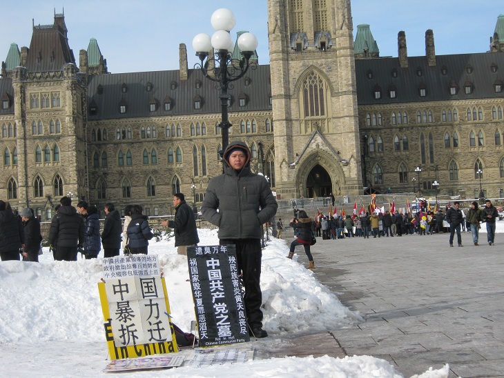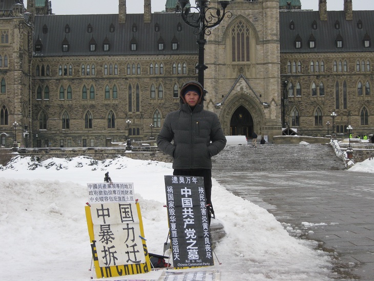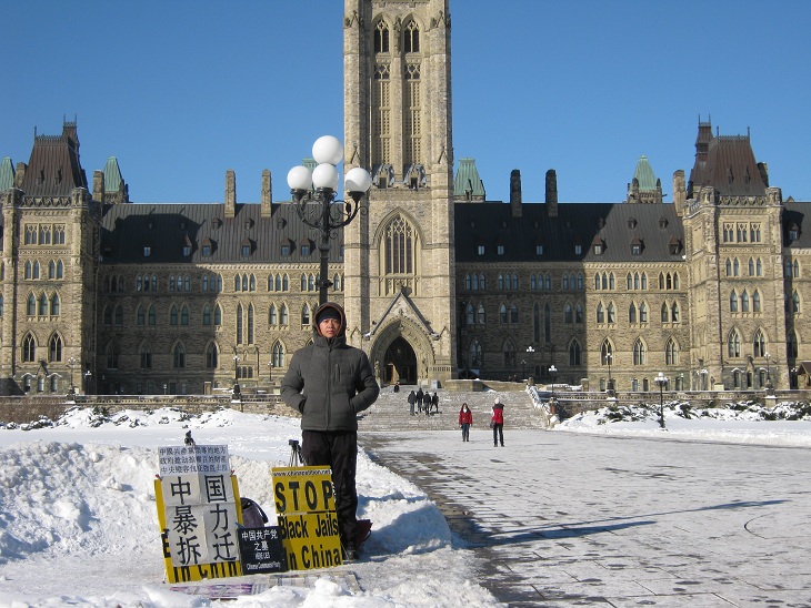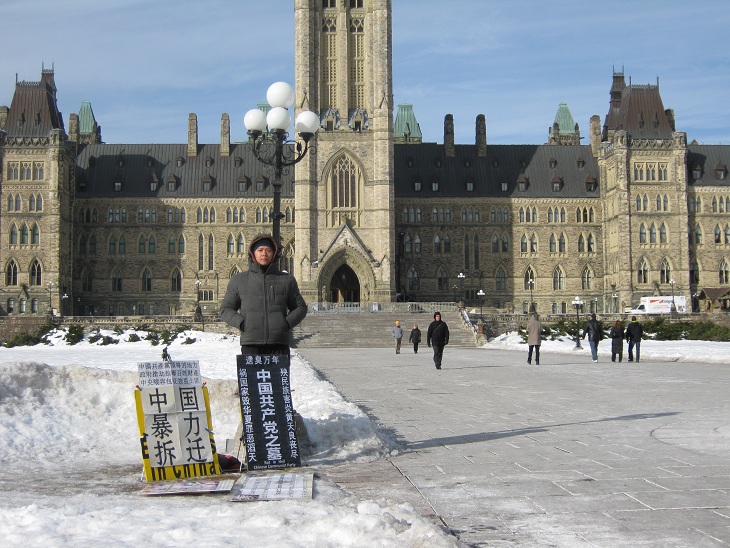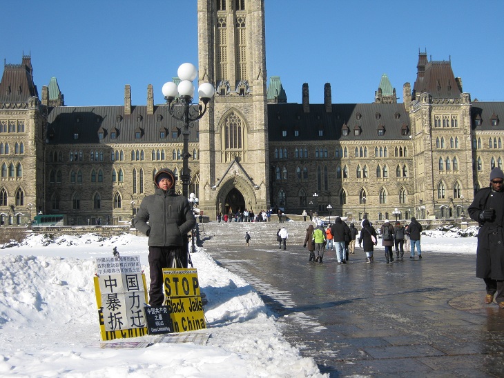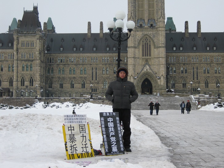 中国公民孙武俊在加国会大厦前无限期请愿抗议强拆(组图)