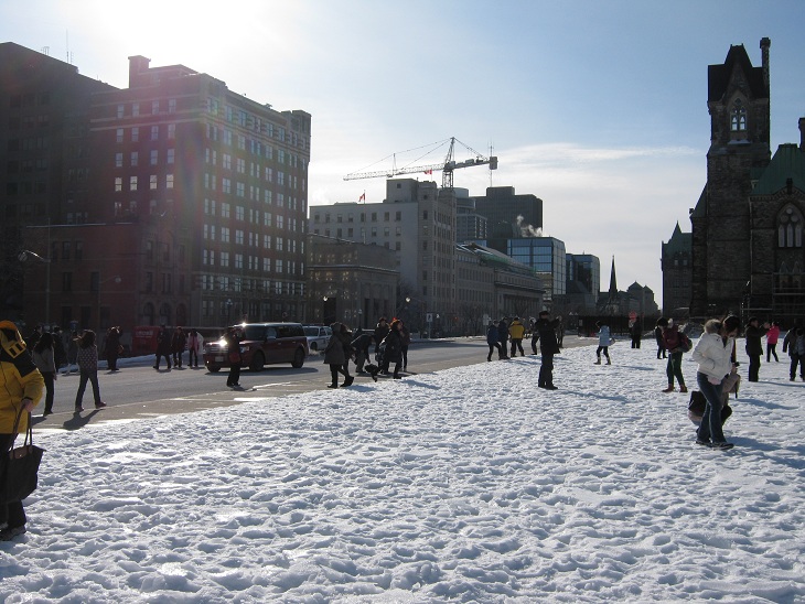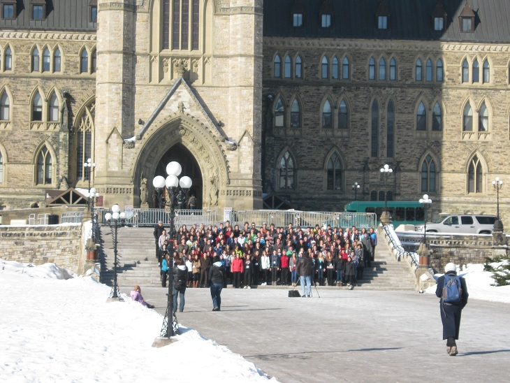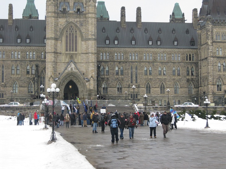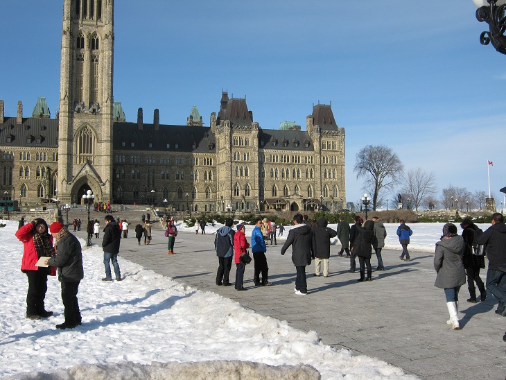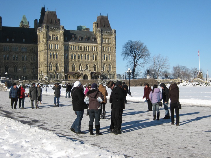 很多加拿大学生来国会山前合影 加拿大首都渥太华国会山上访抗议日记2012年1月30日