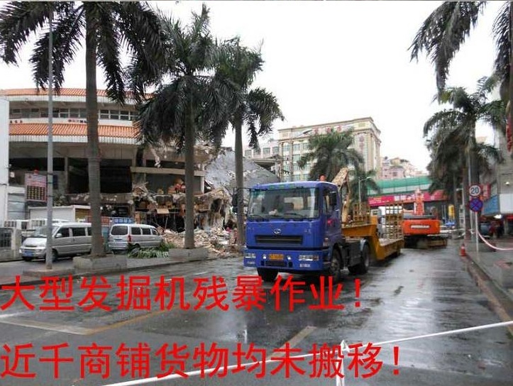 深圳市民的耻辱,中国国民的悲哀!龙年大年初一,原本是喜庆的日子,谁能想到我们睁眼看到的是这样残暴令人发指的一幕,昨日还是繁华的街市一夜间变为了废区——深圳布吉街市!无良的香港邦兆房地产公司在除夕夜残暴得使用挖掘机将此夷为了平地!商户们正在深圳市信访办公室,可惜无领导上班!强求转播.