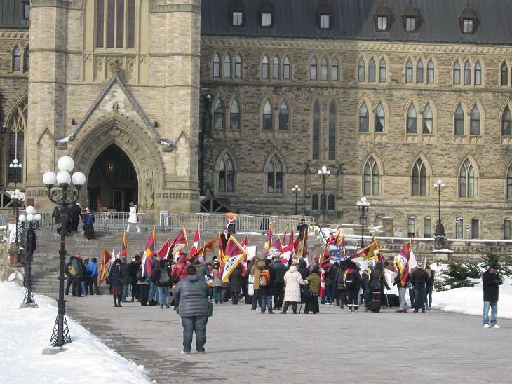 在加拿大的藏民在国会山举行抗议示威 加拿大首都渥太华国会山上访抗议日记2012年2月2日