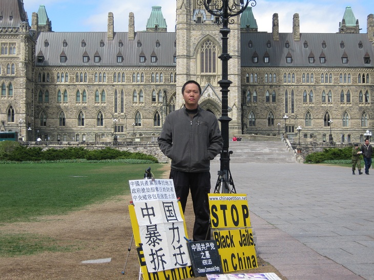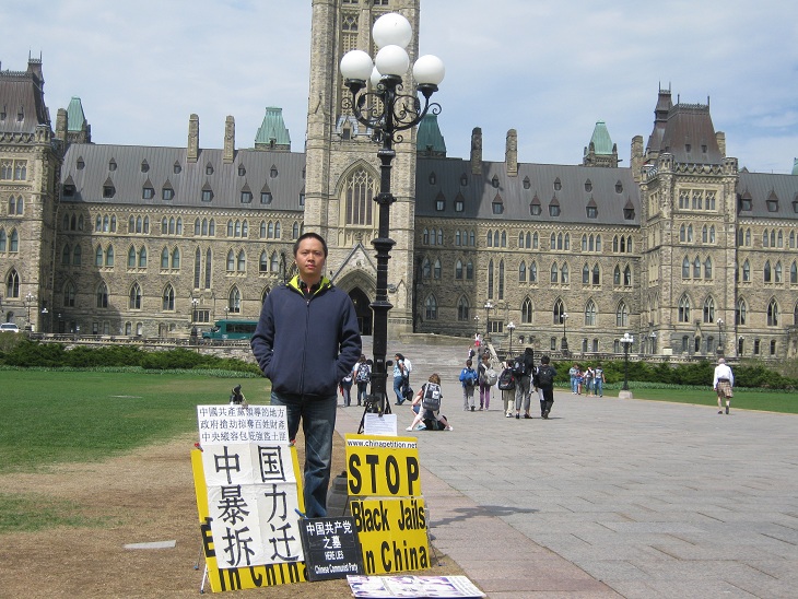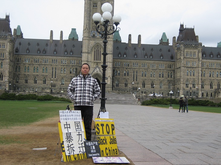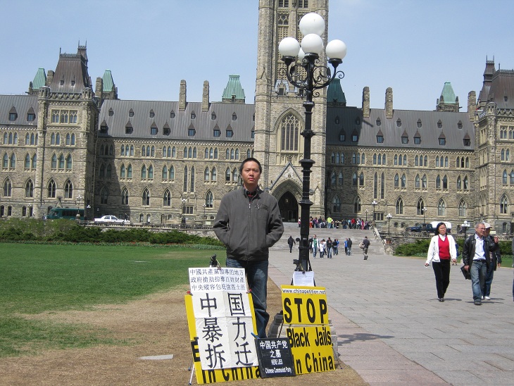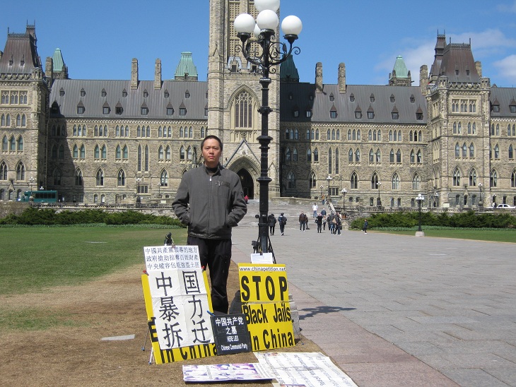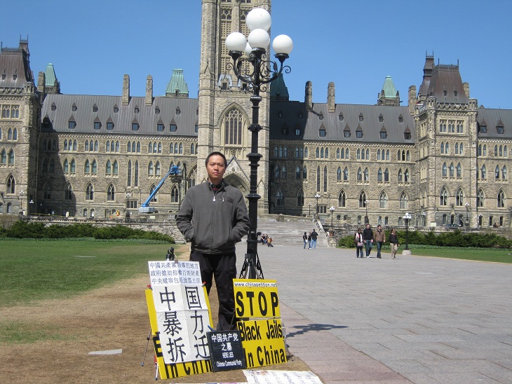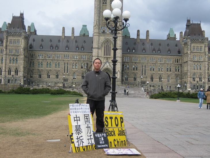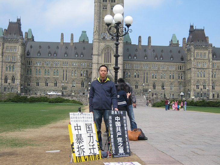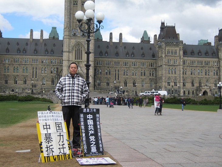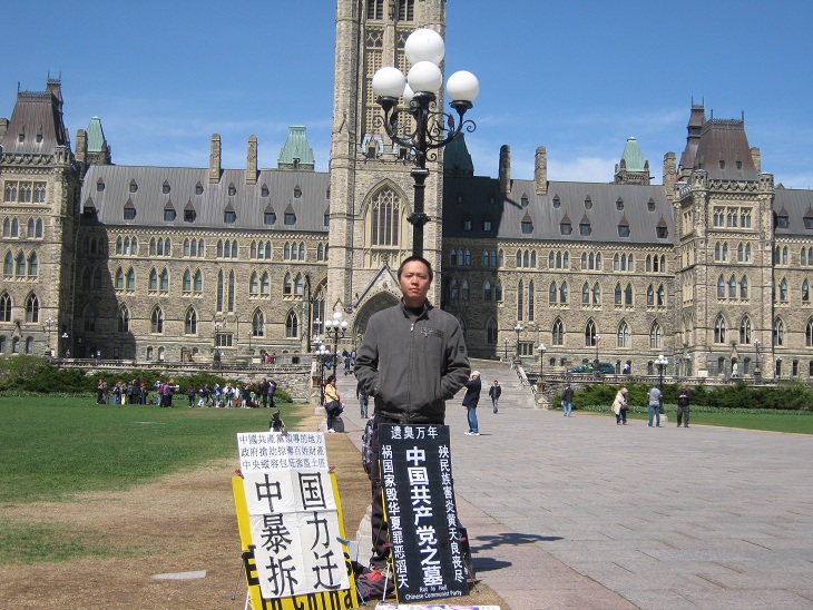 中国公民孙武俊在加国会大厦前无限期请愿抗议强拆(组图)