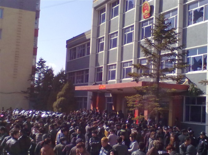 2012年4月6日,辽宁鞍山市台安县高力房镇,上千红星村村民拦车堵路及包围镇政府大楼,抗议镇政府招商引资镍厂,污染环境和损害民众健康。